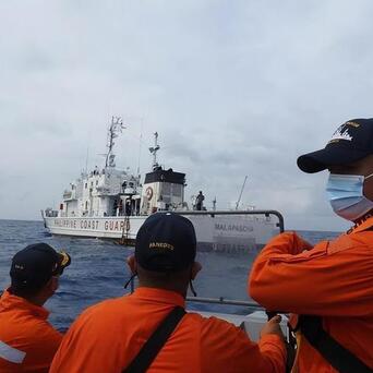 菲律宾海警4409艇和4411艇再次企图前往仙宾礁,但菲律宾海警补给船这次遭拦截后,不再选择强行闯关了,改成劝说中方海警了!据说菲律宾船在原地停航2小时了,菲方一直在与中方协调,苦口婆心的劝中方,希望能允许菲艇通行。